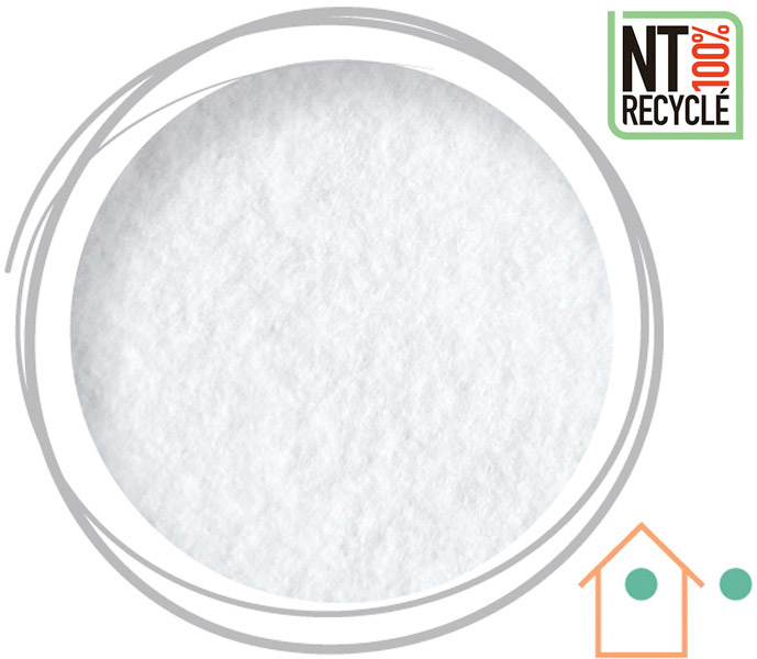 Depuis 2021, nous sommes fiers d’imprimer sur de l’intissé / Non-tissé composé de fibres 100 % recyclées fabriqué à partir de paillettes de plastique issues de bouteilles recyclées.