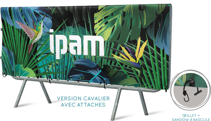 Produit indispensable à toute opération d’animation extérieure, la banderole de barrière, version cavalier ou version housse, permet un marquage précis et impactant de votre événement. Elle offre une visibilité optimale de part et d’autre de la barrière et s’installe facilement.