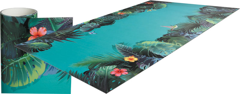 Intissé (non-tissé) 300 g/m² imprimé + antidérapant de 600 g/m². |